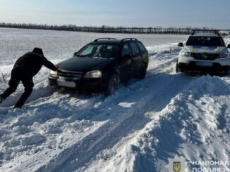 17 січня на автошляху між селами Хмельницьке та Новософіївка легковий автомобіль потрапив у сніговий замет і не зміг самостійно продовжити рух через перемети на дорозі.