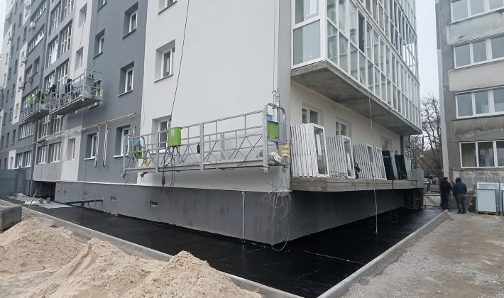 Нині завершуються роботи з утеплення фасаду, встановлення металопластикових вікон на лоджіях і балконах, а в квартирах тривають оздоблення та монтаж внутрішніх мереж.