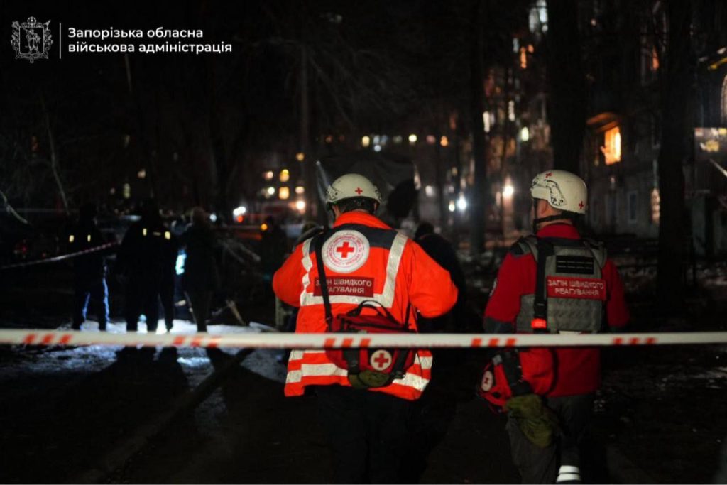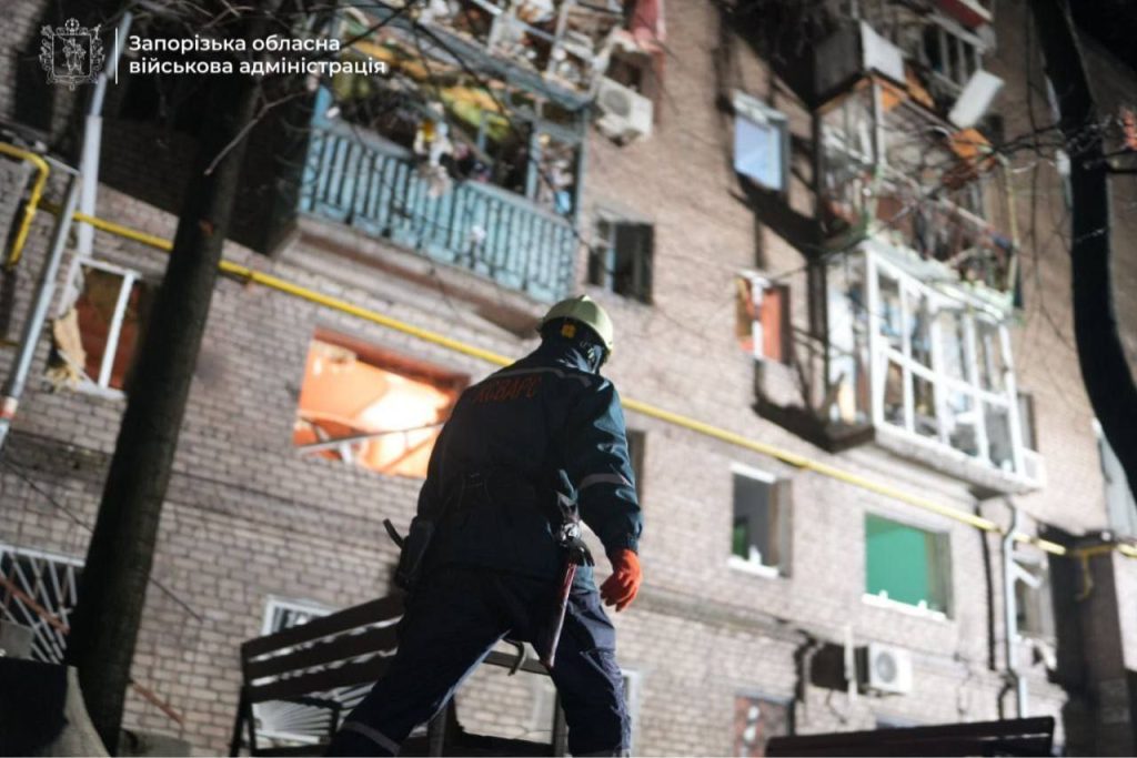 Наслідки обстрілу Запоріжжя російськими БпЛА в ніч на 24 лютого. Фото: ЗОВА
