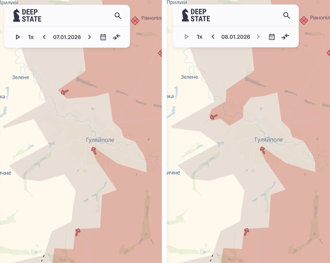 Противник має нові просування в Гуляйполі і Приморському Запорізької області, а також у Філії на Дніпропетровщині. Про це повідомив OSINT-проєкт DeepState 8 січня.