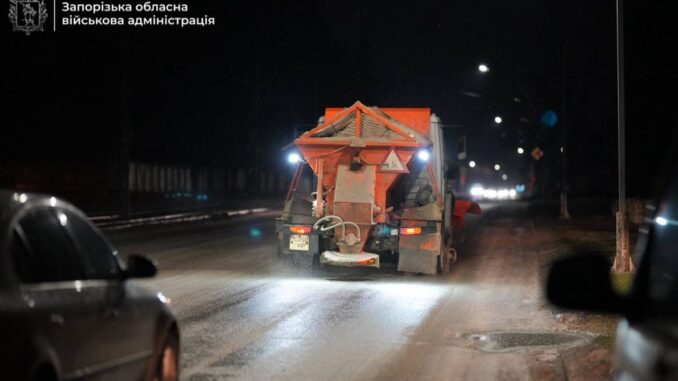 Як повідомили в ОВА, що у зв’язку з погодними умовами та ожеледицею на дорогах області працюють понад 50 одиниць техніки та працівники комунальних служб.