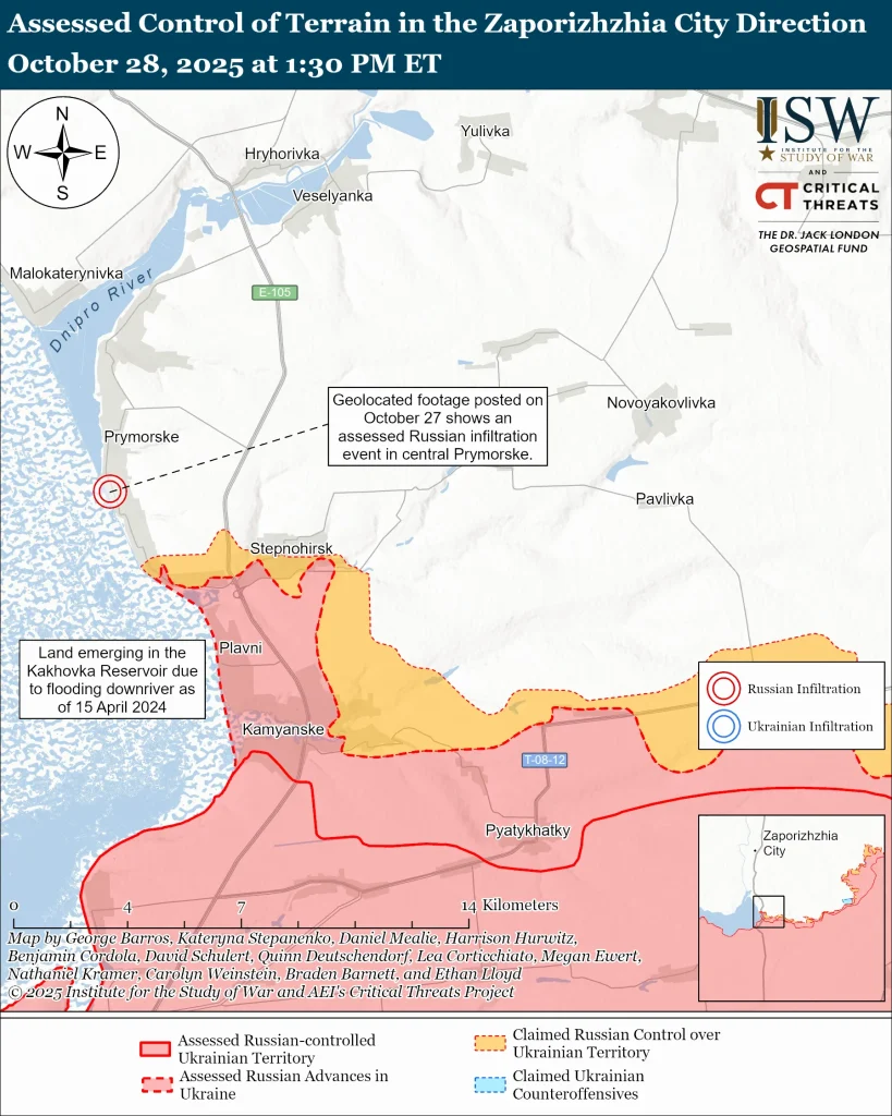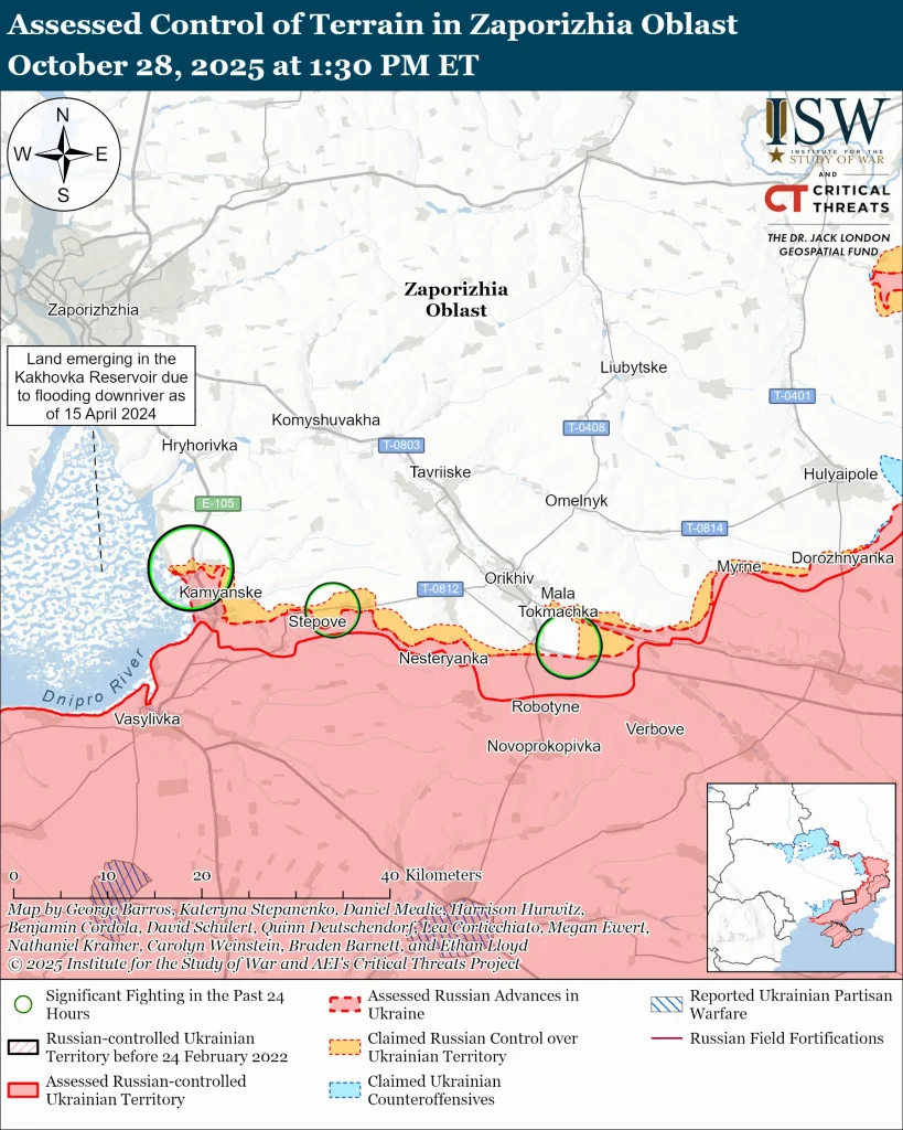 Карта бойових дій на Запорізькому напрямку, 28 жовтня 2025. Фото: ISW