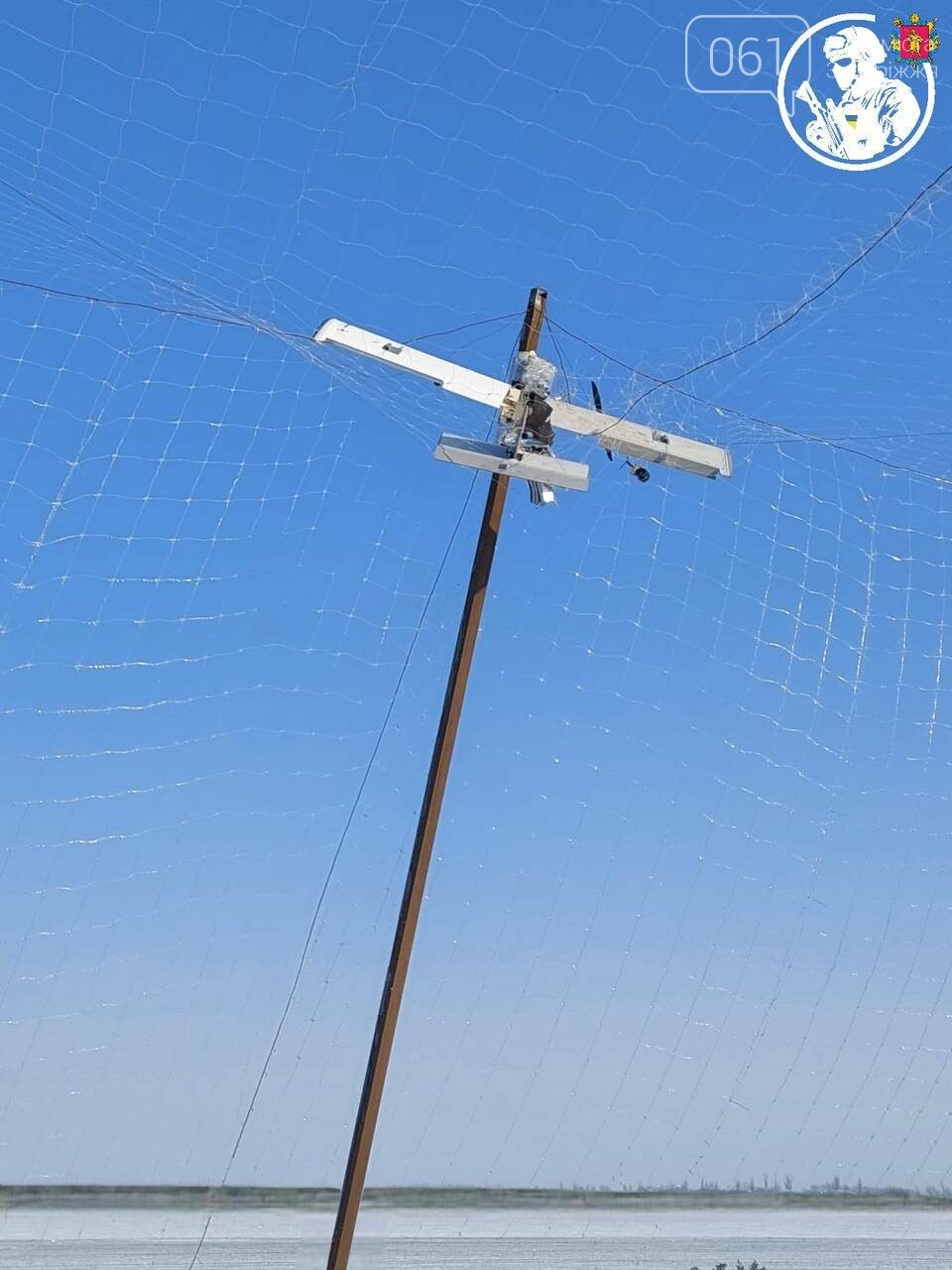 У Запорізькій області на основних логістичних шляхах вже побудовано більше 100 км антидронових тунелів. Вони вже захищають цивільних і військових від ударних дронів ворога. В ОВА показали ворожий дрон «Молнія», який заплутався в антидроновій сітці і не долетів до своєї цілі.