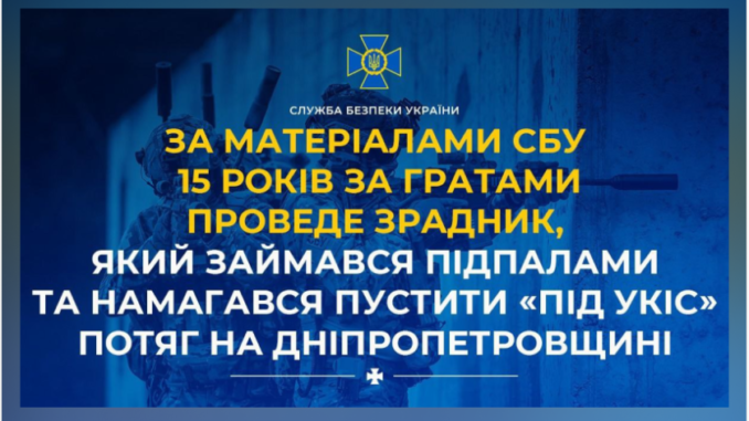 Суд визнав винним 25-річного мешканця Дніпропетровщини, завербованого російською спецслужбою, у спробах диверсій на залізничній інфраструктурі регіону. За матеріалами СБУ зраднику призначили 15 років ув’язнення з конфіскацією майна.