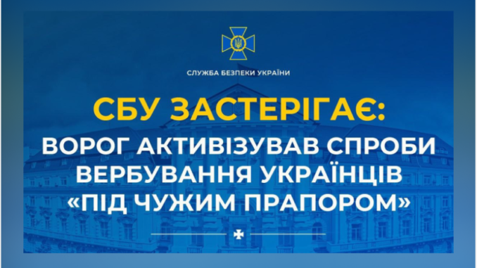 Служба безпеки України повідомляє про активізацію ворожих спецслужб, які намагаються вербувати громадян України, використовуючи тактику так званих операцій «під чужим прапором».