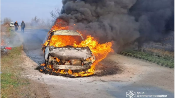 У суботу, 28 березня, до Служби порятунку «101» надійшло повідомлення про загорання автомобіля на вулиці Дніпрова селища Аули Криничанської селищної територіальної громади Кам’янського району.