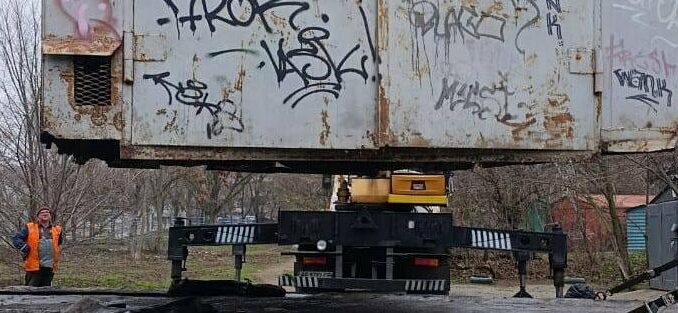 На вулиці Стародніпровська комунальники примусово прибрали МАФ. Власник споруди проігнорував вимоги міської влади самостійно прибрати гараж.