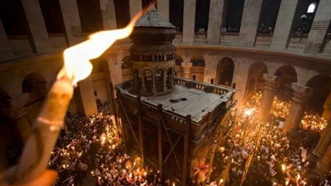 У Єрусалимі у Велику суботу 11 квітня в Храмі Гробу Господнього відбулося зішестя Благодатного вогню – однієї з ключових подій православного світу напередодні Великодня. Перед початком обряду в храмі гасять усі джерела вогню, після чого Кувуклію – каплицю над Гробом Господнім – перевіряють представники різних конфесій і служб. Далі Патріарх Єрусалимський заходить до каплиці з незапаленими свічками, де після молитви, за свідченнями вірян, з’являється вогонь.