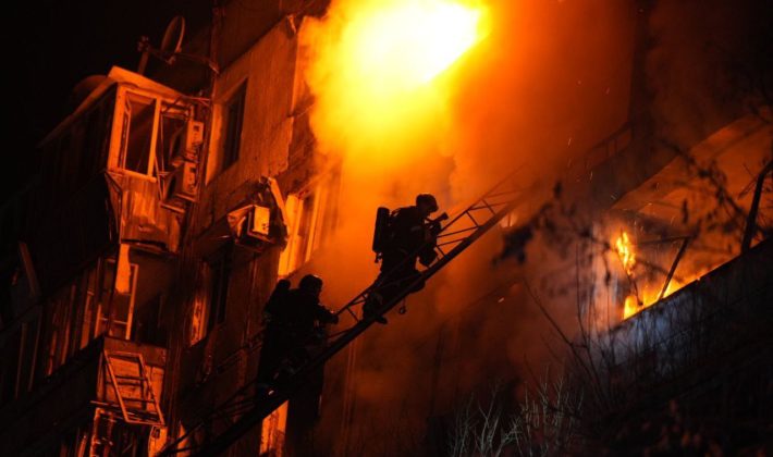 Удар дрона типу «Shahed» спричинив загоряння щонайменше у чотирьох квартирах. Мешканців верхніх поверхів евакуювали. До ліквідації пожежі залучили понад 50 рятувальників і 14 одиниць техніки. Наразі пожежу приборкали, на місці продовжують працювати аварійні та рятувальні служби.