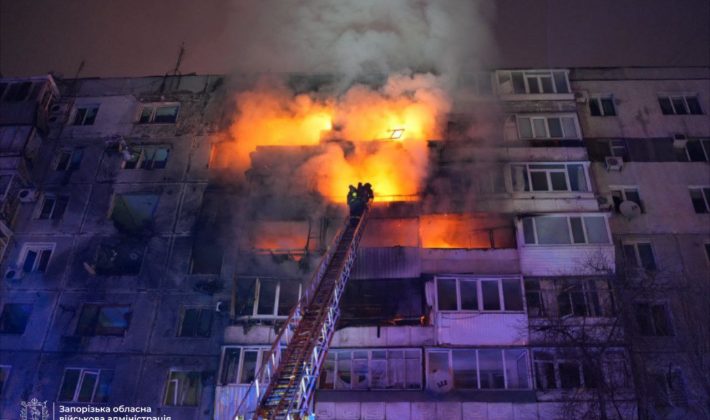 Сьогодні, 16 грудня, у Запоріжжі російський безпілотник влучив у багатоповерховий житловий будинок. Вогонь охопив квартири на двох поверхах.