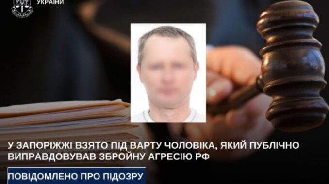 У Запоріжжі взято під варту чоловіка, який публічно виправдовував агресію рф