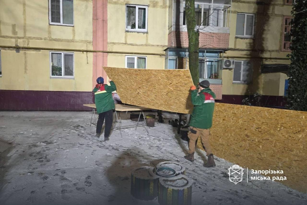 Комунальні служби завершили першочергові роботи з ліквідації наслідків атаки по місту 4 січня. Як повідомили у мерії Запоріжжя, пошкодження виявили у п’яти багатоповерхівках. В оселях вибило вікна та пошкодило балкони.