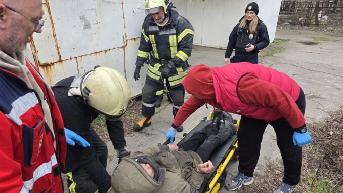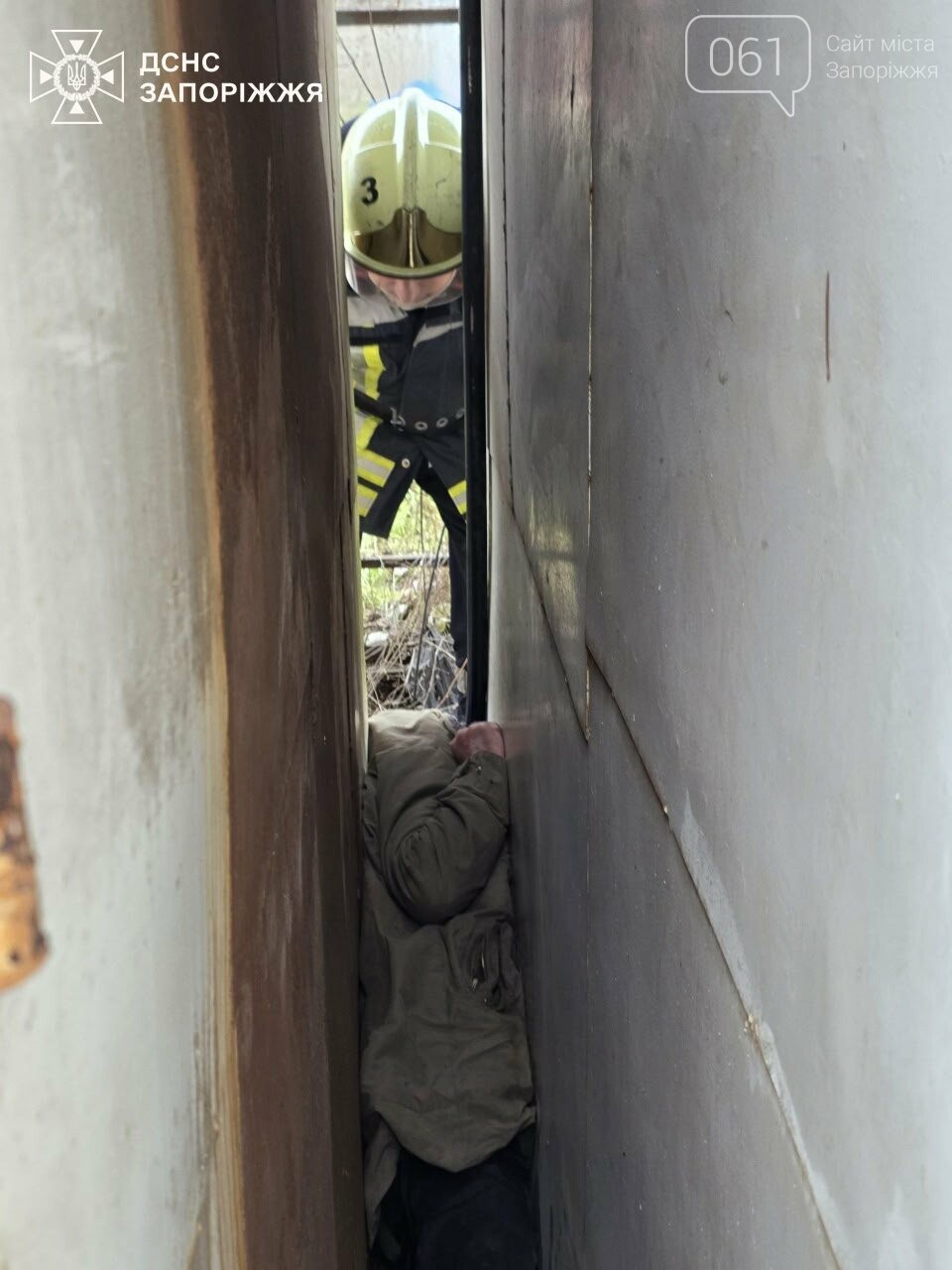У Запоріжжі жінка застрягла між металевих контейнерів, знадобилась допомога рятувальників