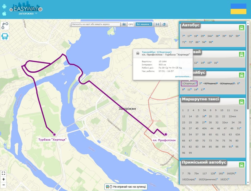 У Запоріжжі змінився розклад руху тролейбусного маршруту №1, який курсує за маршрутом «площа Профспілок — Турбаза “Хортиця”».