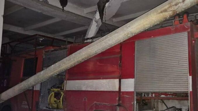 “Внаслідок удару пошкоджена пожежна техніка, покрівля будівлі, вибиті двері та вікна”, – зазначили у відомстві.