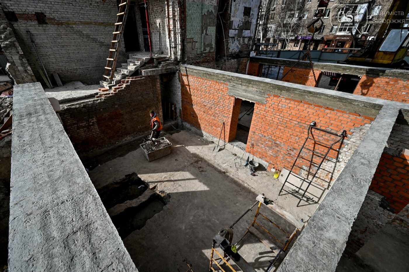 На першому етапі робітники розібрали аварійні конструкції, посилили фундамент, над зруйнованою частиною, звели нові стіни та перекриття для другого і третього під'їздів.